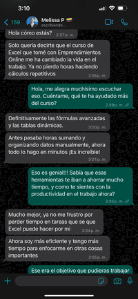 Yo creía saber de Excel, pero al estudiar este curso he llegado a otro nivel, es Excelente 😘😘